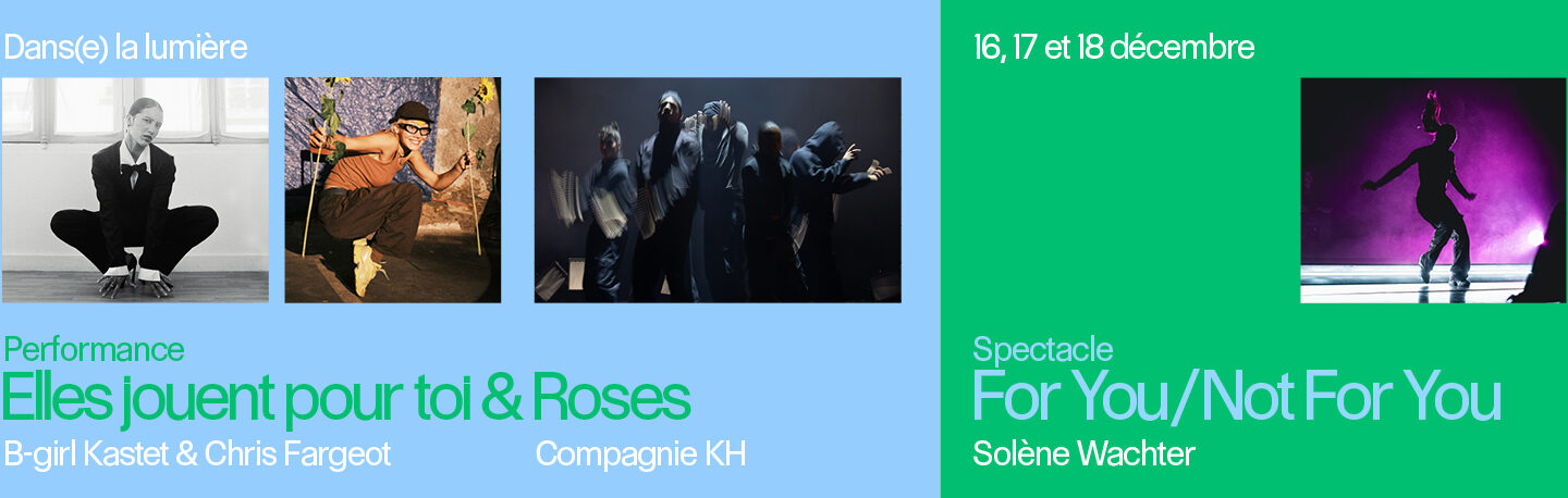 Natasha “Kastet” Kiliachikhina et Chris, danseuses issues du break russe pour l’une, parisien pour l’autre, explorent leur lien et donnent ainsi naissance à une nouvelle énergie en vibration commune. Ensuite, la Compagnie KH propose Roses, voyage entre réalité et fiction. Pour finir, Solène Wachter vous invite un solo bi-frontal entre concert pop et « backstages ».