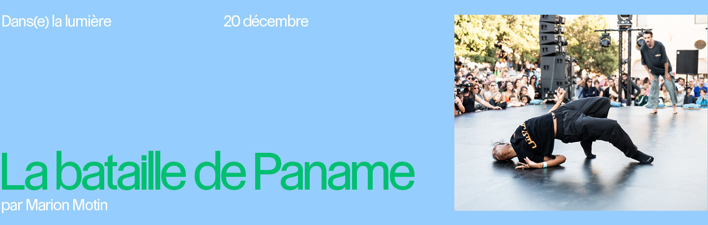 La Bataille de Paname est LE battle où les danseurs sont libres de s’exprimer comme ils le ressentent. Tous les styles s’y rencontrent, mais c’est avant tout l’incarnation et le moment qui priment : on sort des codes, on replace le curseur sur le feu de l’instant ! C’est l’endroit où les plus grandes personnalités s’incarnent et nous embarquent dans une histoire unique à chaque passage. La musique est imprévisible et sans frontières ! Laissez votre super pouvoir prendre le dessus et exploser pour faire frissonner les spectateurs. Un battle mené par Marion Motin, figure incontournable de la scène française et internationale. Venez assister à des face-à-face explosifs, où la créativité et l’audace règnent, et vibrez au rythme d’un battle où tout peut arriver.