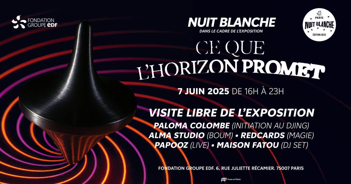 À l’occasion de la Nuit Blanche 2025 et dans le cadre de notre exposition Ce que l’Horizon promet, la Fondation ouvre grand les portes sur l’avenir avec une programmation festive, accessible à tous les âges et notamment à la jeunesse. La Fondation vous propose des animations musicales, des surprises magiques et des rencontres inattendues…